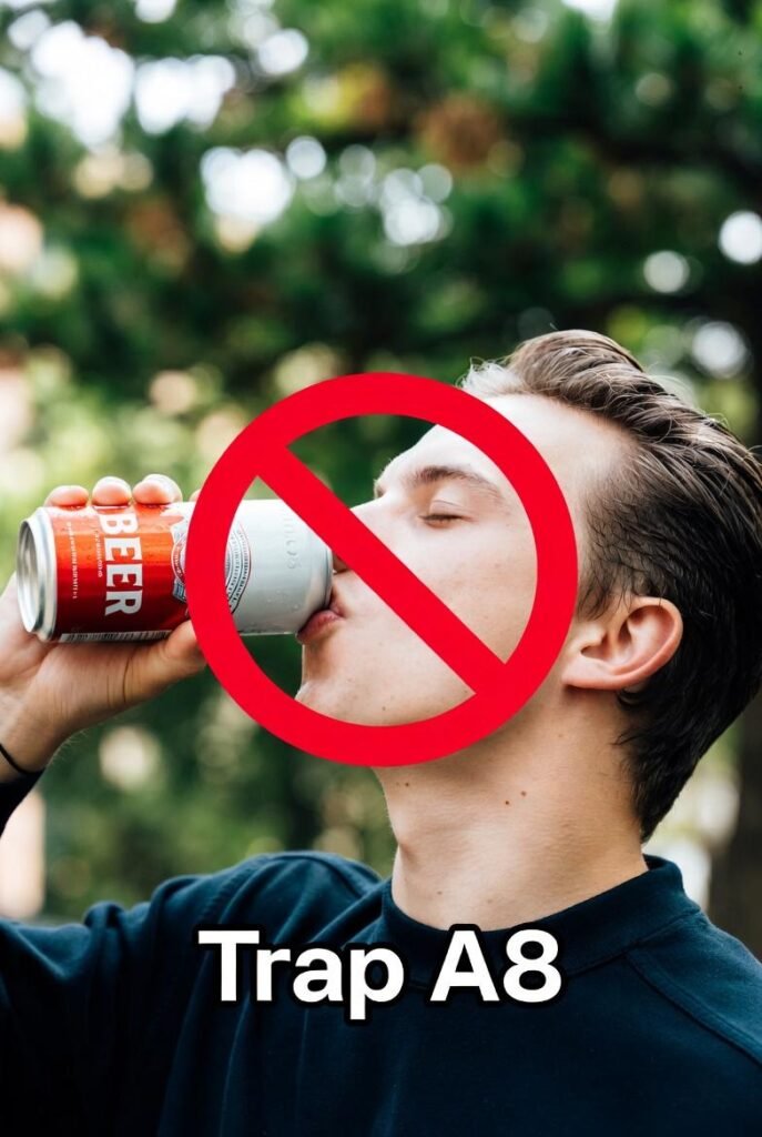 The “Alcohol” trap involves excessive or irresponsible drinking, even if you’re of legal age (21 in the U.S.), leading to poor decisions and significant harm.